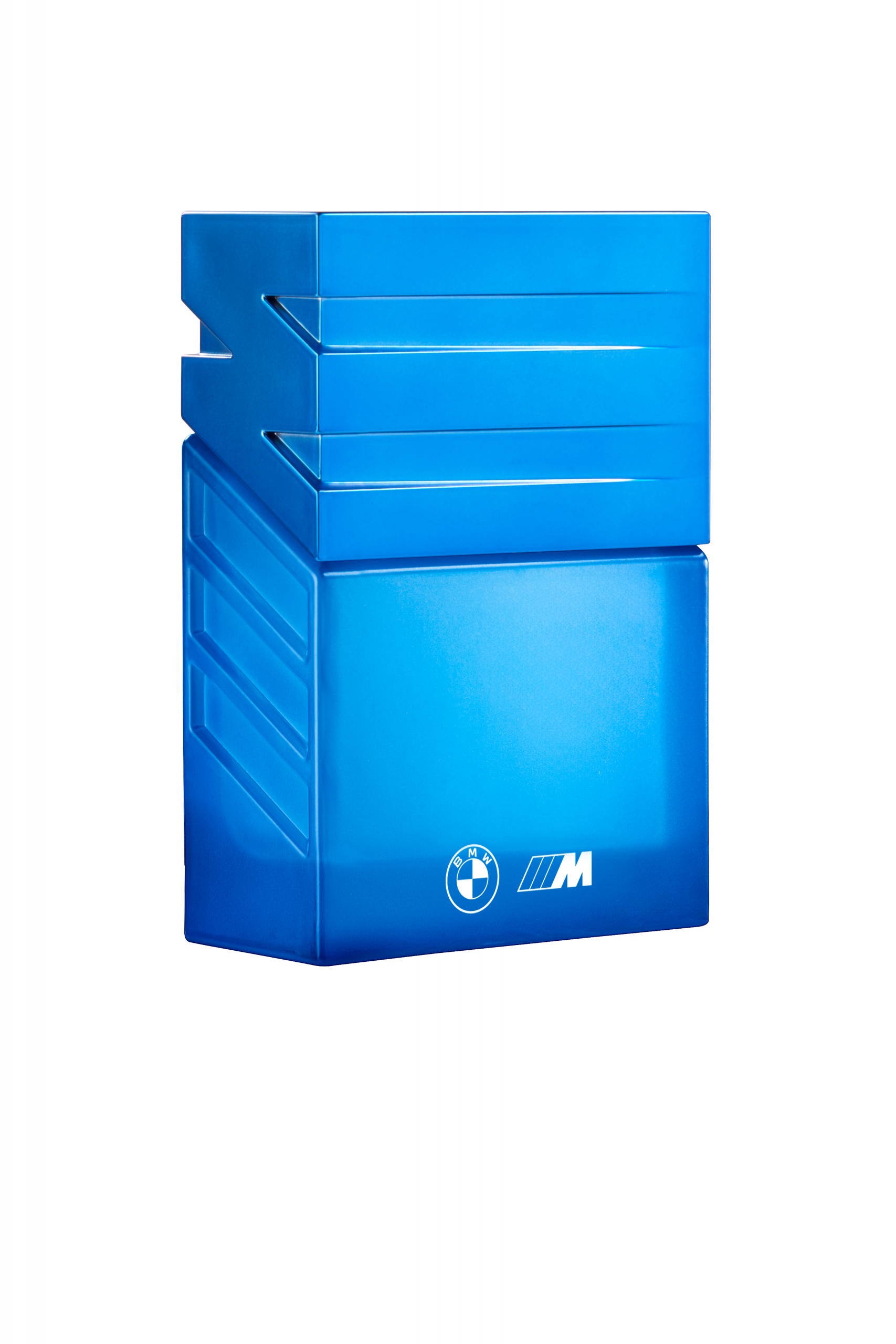 - A világoskék üveg az M logó első csíkját jelképezi.
